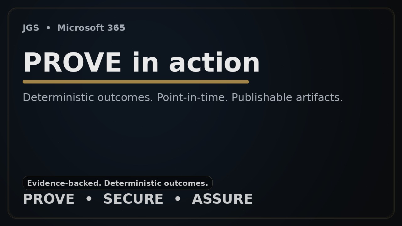 We take a read-only snapshot of your Microsoft 365 (your business email, Teams, and files). Then we map what we find to multiple compliance standards and package it into an Evidence Binder and Evidence Index you can hand to insurers, clients, auditors, or leadership—without scrambling for screenshots.